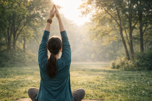 Einfache Yogaübungen, geführte Meditation und Entspannungsübungen in der freien Natur.